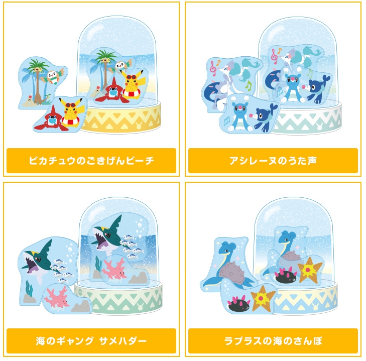 ラインナップは「ピカチュウのごきげんビーチ」「アシレーヌのうた声」「海のギャング サメハダー」